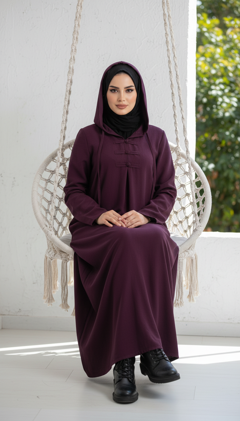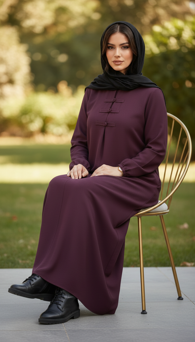 Elegant kaftan crafted from treated linen fabric resistant to shrinkage, designed for both comfort and style.