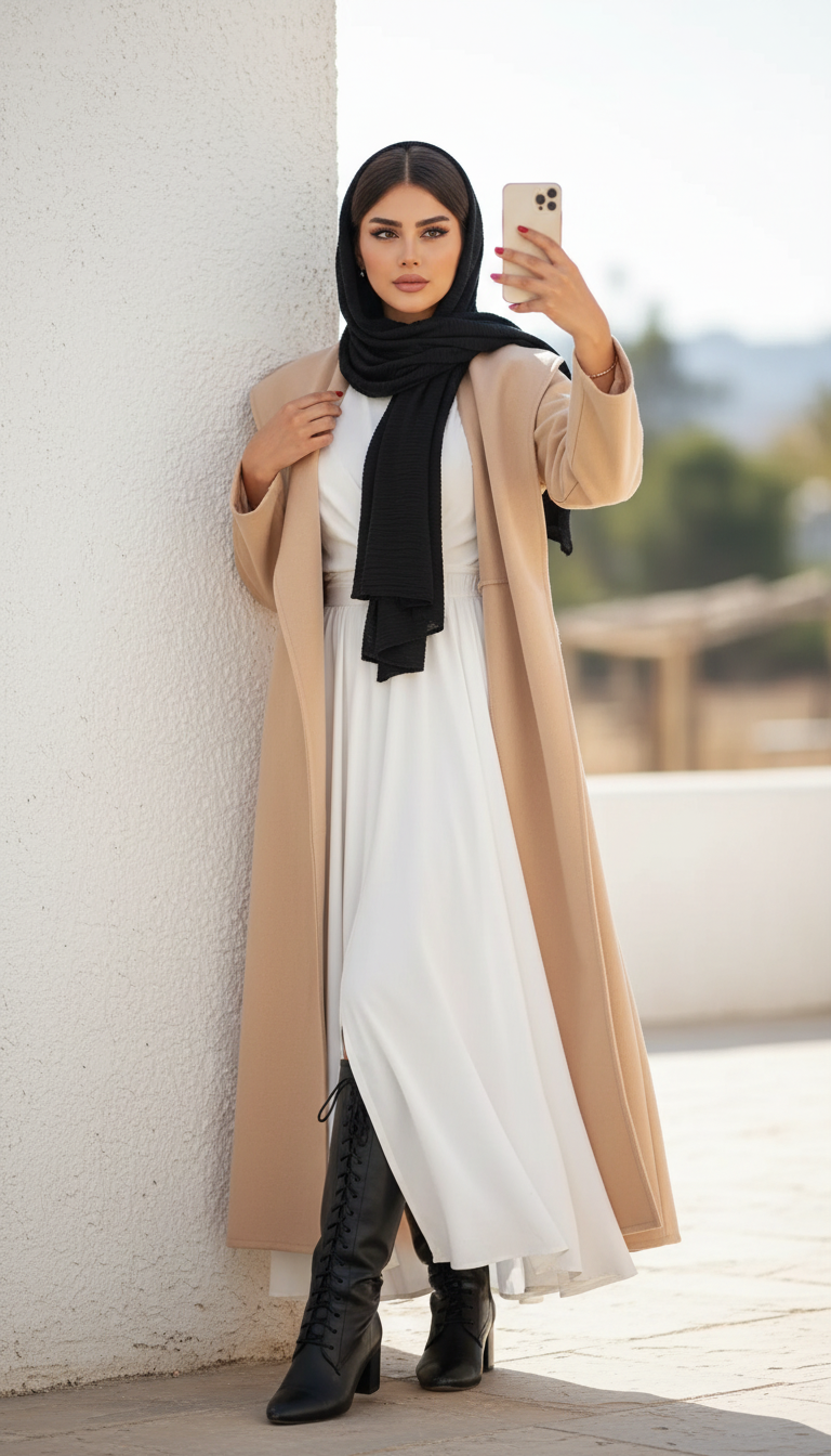 Elegant long coat made from wool or heavy felt, providing maximum warmth for cold winter days.